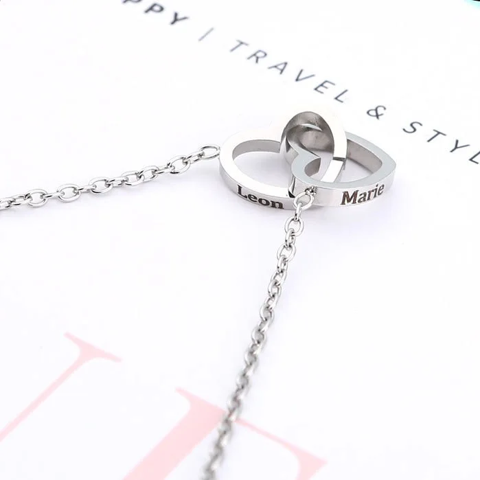 Double Heart Bracelets for Women Custom Engraved Name Steel Bracelets Eternal Rose Box